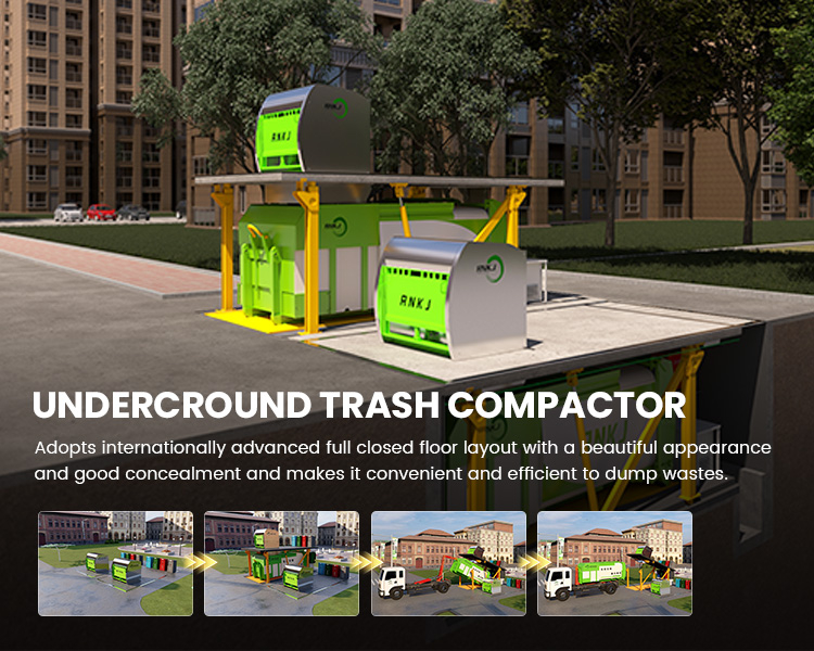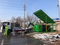 1. First, the sanitation workers pour the bulk waste concentrated in the waste transfer station into the compression box. When the waste is loaded to the upper plane of the compression, the operator starts the hydraulic system. Under the action of the squeezing oil cylinder, the pressure head presse
