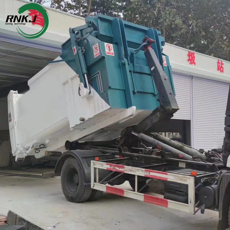 After the garbage collection vehicle pours the garbage into the hopper, it drives the press head through the hydraulic system, and the press head moves along the track and passes through the hopper to exert pressure on the garbage inside the garbage bin, compressing the garbage into blocks. During the compression process, the wastewater in the garbage will be squeezed out and treated by a dedicated wastewater collection system. The volume of the compressed garbage can be significantly reduced. When the garbage bin is full, the transfer vehicle will transport the garbage bin away for subsequent processing, such as landfilling or incineration.