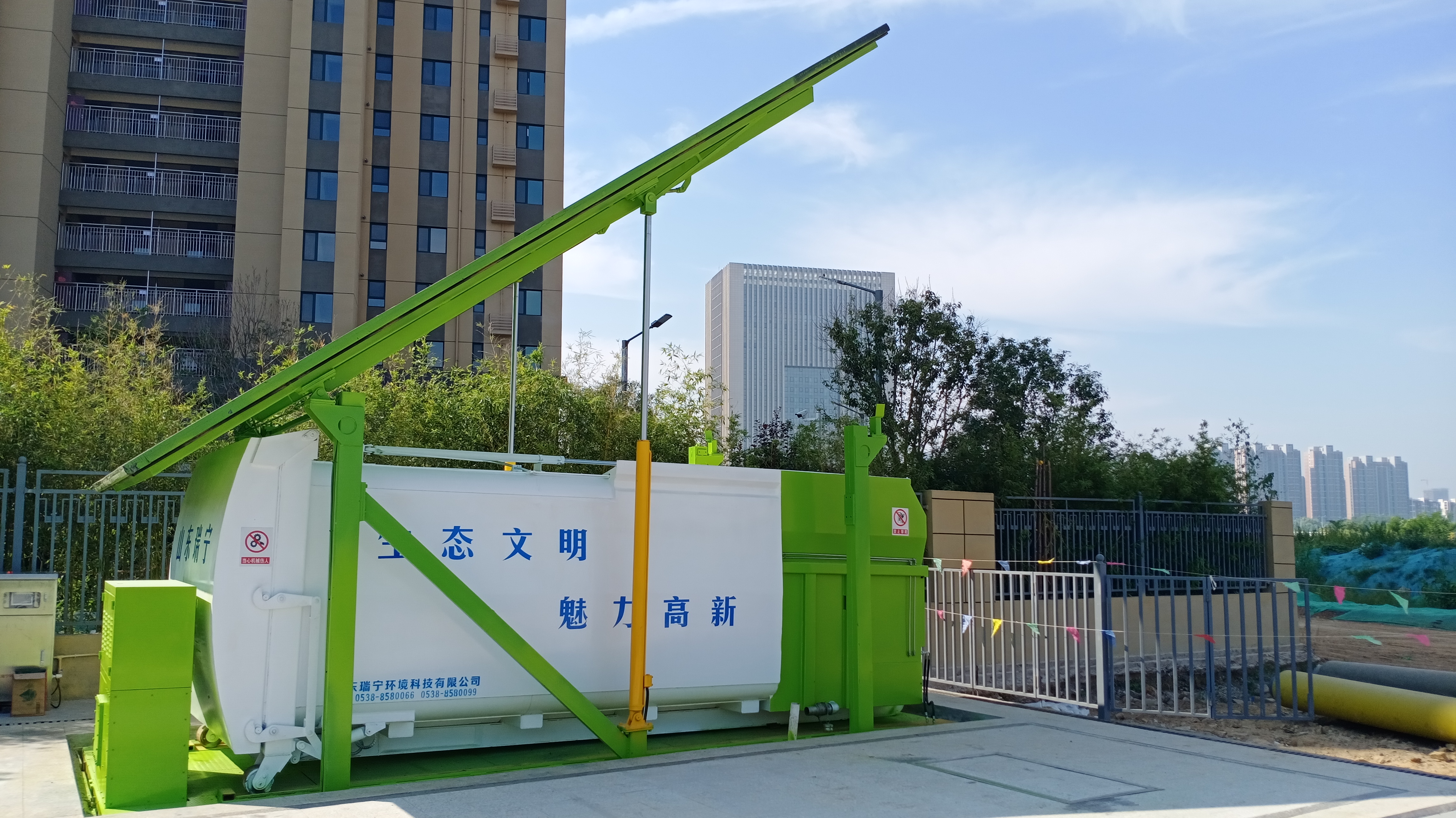 Garbage Compactor which adopts the underground garbage compression technology are developed according to the current situation of solid-waste treatment. It mainly consists of garbage storage tank, lifting translational device, compressing mechanism, medicine spraying and stink smell removal system, electro-hydraulic controlling system and etc. It has advantages such as modular design, small area demanded, excellent compactability, low require for foundation, environmental protection. This equipment is widely used in the city streets, communities, schools, hospitals, bus stations, industrial zone, commercial markets, gardens and other public service areas.