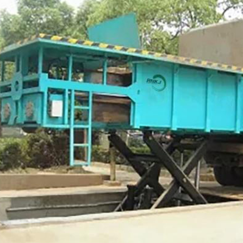 After the garbage is filled, the equipment is raised from the pit. Dock with the garbage truck and open the discharge door after docking. The garbage block is pushed into the garbage transportation vehicle through the compression mechanism.
