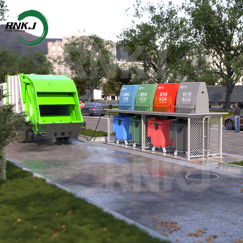 Ground-based disposal: Four classification disposal ports are set on the ground, including recyclables, kitchen waste, other garbage, and hazardous waste. The disposal covers can be opened by infrared sensing or manually. Residents complete the classification disposal.